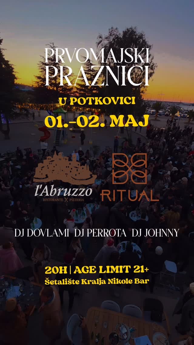 Celebrate May Day holidays with DJ sets in Potkovica. L’Abruzzo & Ritual present open-air DJ sets on May 1st and 2nd in Potkovica. Reservations: l’Abruzzo - 067 536 415/DM, Ritual - 068 687 777/DM. Join us by the sea for spring vibes. Starts at 20:00. Age limit 21+.