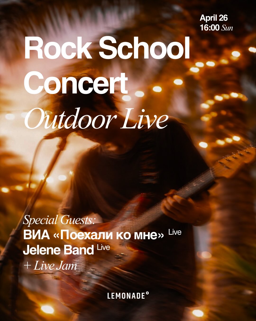 WEEKLY SCHEDULE Weekdays → music, jams & games Mon, April 20 — 20:00 Bartender’s Choice [Vinyl Listening] Tue, April 21 — 20:00 Open Mind Jam Kirill Matveev & friends [Live Music Jam] Wed, April 22 — 20:00 Table Soccer Cup Katya Romanova hosted by Ivan Tuzov [DJ: Electronic. Participation fee: €1] Thu, April 23 — 20:00 Četvrtak Spacecowboy [DJ: Electronic] Weekend → parties & live sessions Fri, April 24 — 20:00 Twist & Shout INBTWIN / Burpee / Mike [DJ: House / Breaks / Funk] Sat, April 25 — 20:00 Sequence Aomori / Samson [DJ: House / Techno] Sun, April 26 16:00 — Rock School Concert Outdoor Live ВИА «Поехали ко мне» Live Jelene Band Live + Live Jam [Live Concert + Jam] 18:00 — Table Soccer Cup (Sunday Edition) hosted by Ivan Tuzov [Participation fee: €1] 📍 Lemonadeº Bar, Bečići