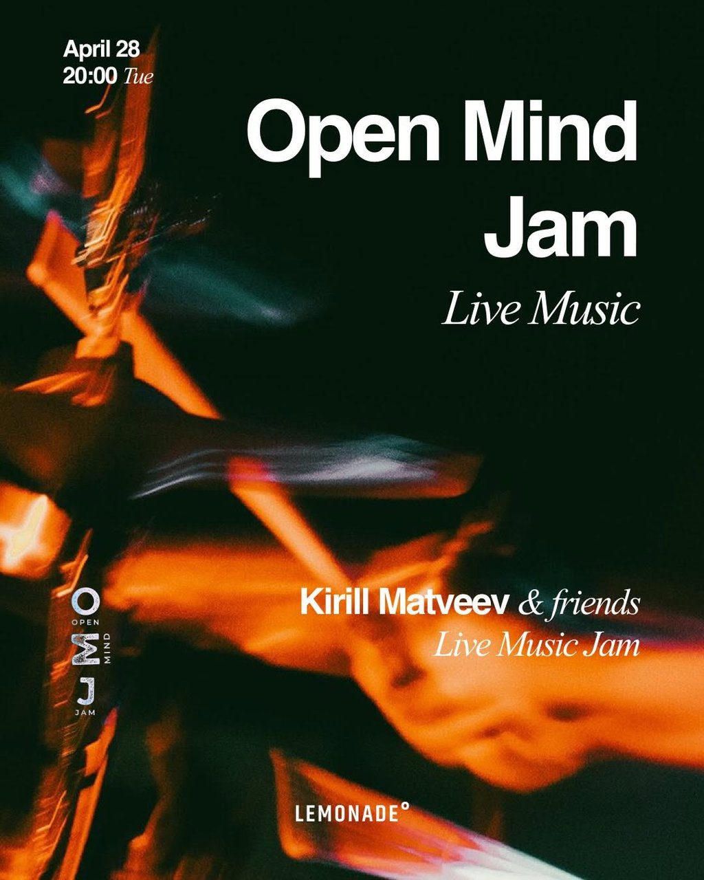 WEEKLY SCHEDULE Weekdays → music, jams & games Tuesday, April 28 — 20:00 Open Mind Jam Kirill Matveev & friends [Live Music Jam]