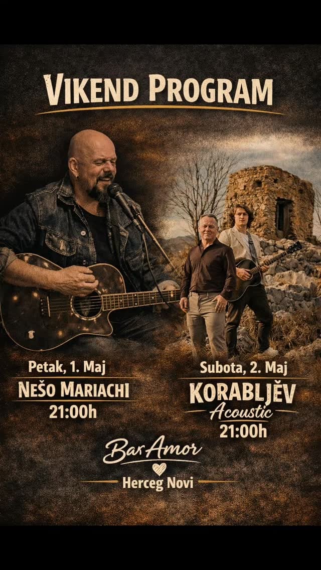 Weekend program at Amor Cafe & Bar featuring Nešo Mariachi. Reservations: 69 705 706