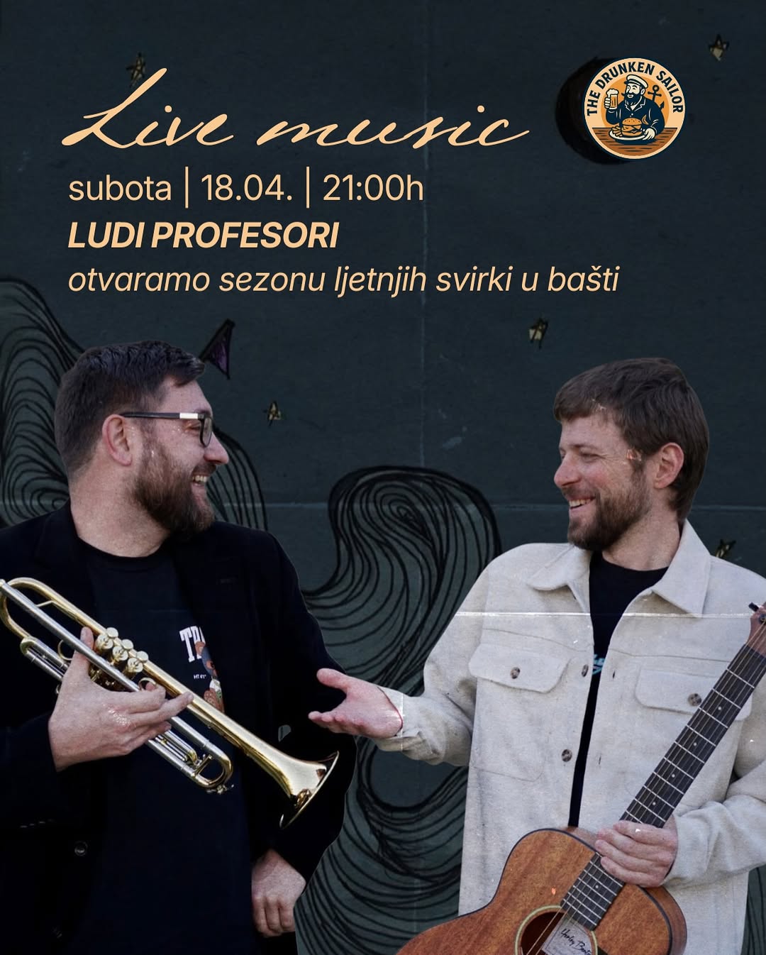 Saturday, 18.04. • 9:00 PM 🎶 Crazy Professors We are opening the season of summer concerts in the garden. 🌿 📍 Pjaca od Zatvora 343, Stari grad Kotor ⚓