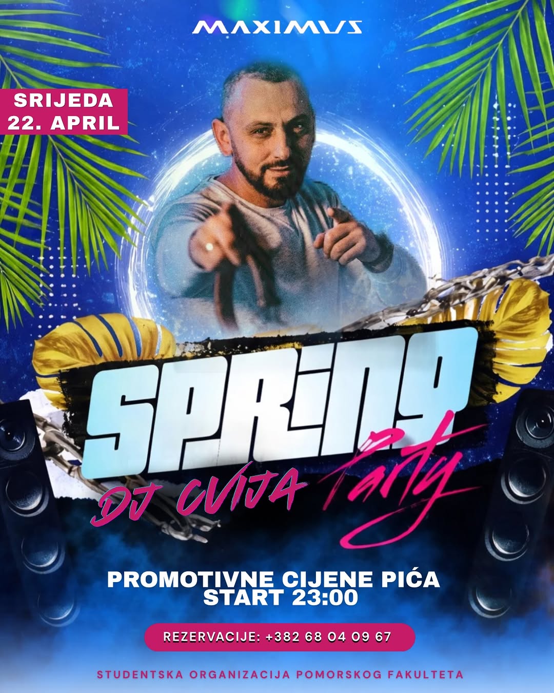 🪩🌺SPRING PARTY🌺🪩 It's time to take our minds off exams and obligations and get together again with good music, a great atmosphere and spring energy. 🌸 In light outfits and an even better mood — see you at the Spring Party! 🎧 @cvija_deejay 🗓️ 22.04. from 23.00 📍 @maximuskotor See you, your @pfk_so!