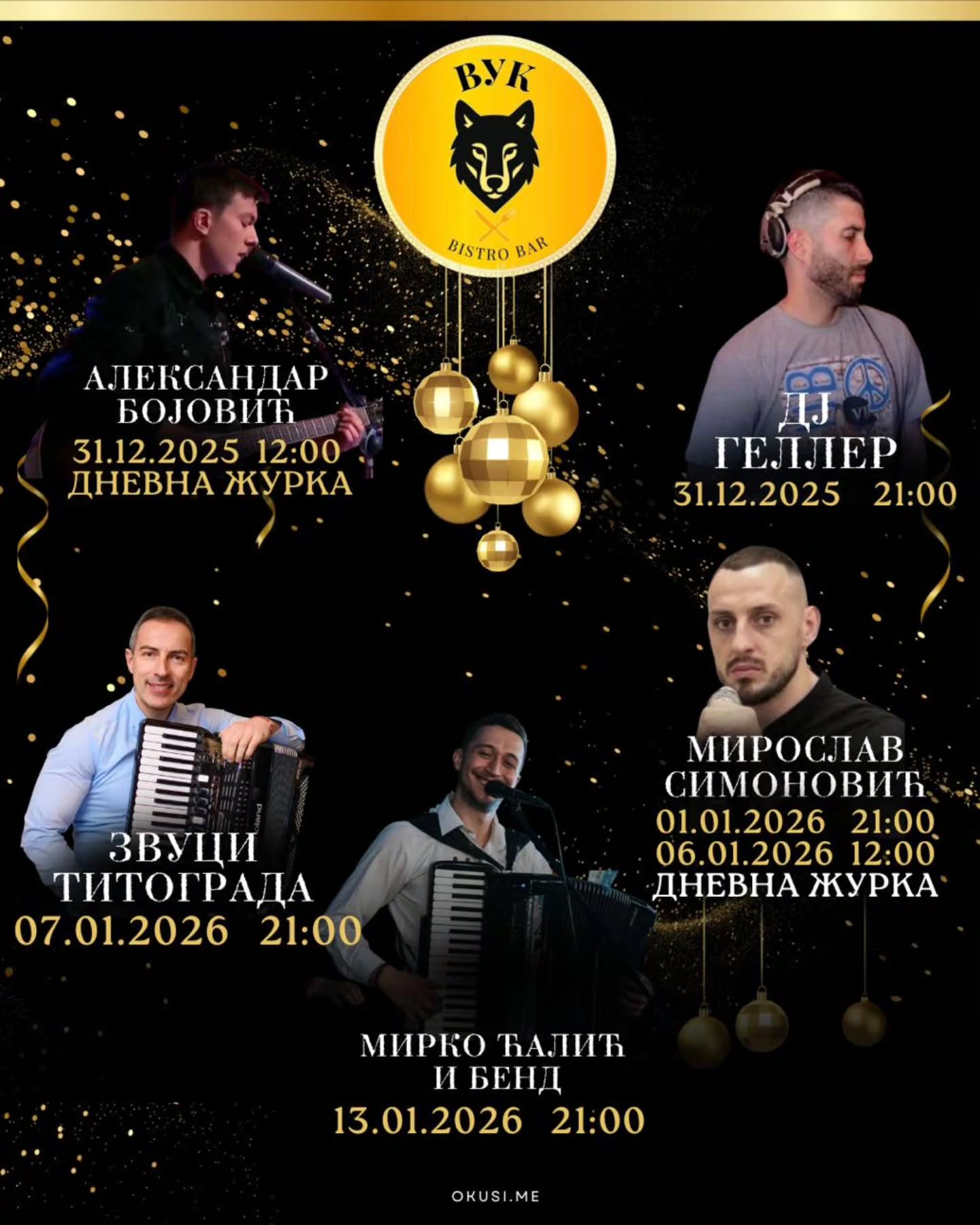 The holidays are upon us ✨️ Spend the most beautiful days of the year with the perfect blend of music and atmosphere at Bistro Bar "VUK" 🎶🥂 📞Reserve your place on time: +38269999907
