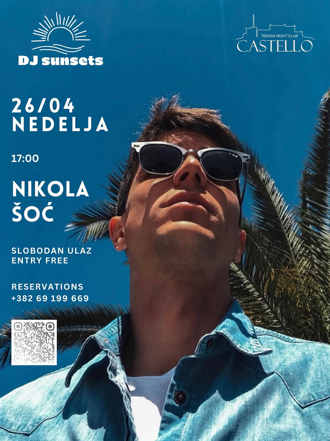 April 26 | 5 PM Castello terrace Sunset vibes 🌅 Nikola Šoć on deck. Be there.