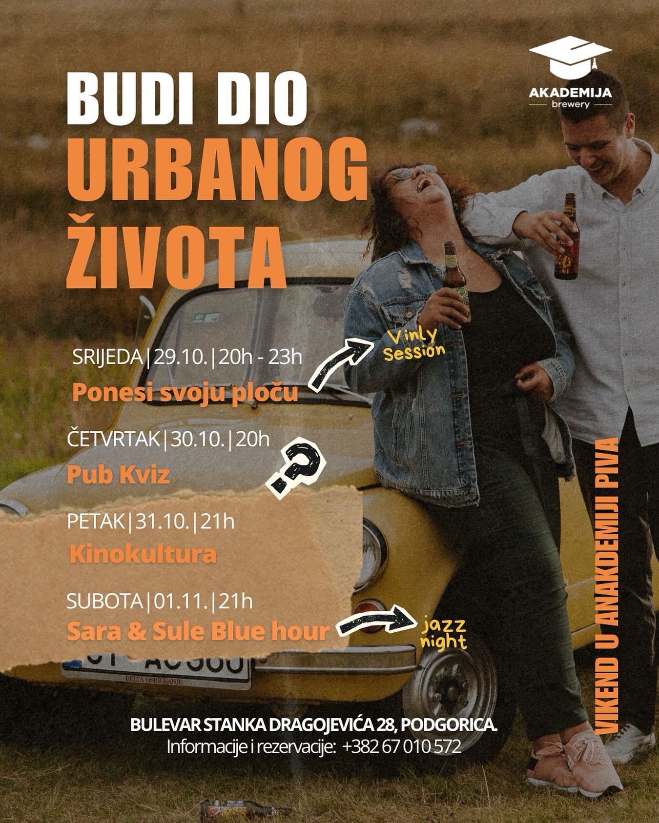 This week, the Academy's repertoire is full of events! Wednesday: Bring your own record with @6_bitt Thursday: Pub quiz Friday: Djuskamo with @mkkinokultura Saturday: Jazz night with @jovovicsara and @sulejovovic We are waiting for you! #akademijapiva #akademijabrewery #kraftpivo #craftbeer #podgorica #montenegroevents