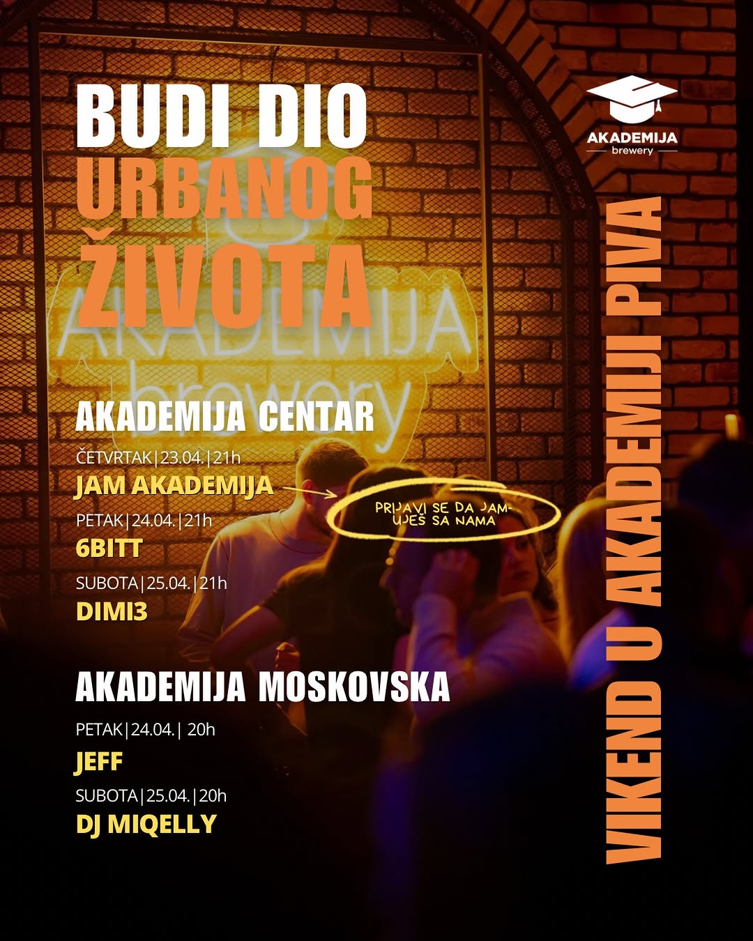 Repertoar za ovu nedelju je tu! 🍻 Ovog četvrtka, 23.04., Akademija Jam donosi sjajnu energiju, a i lijepo vrijeme je na našoj strani! Pridruži nam se da zajedno jamujemo pod otvorenim nebom. Vidimo se! 💥