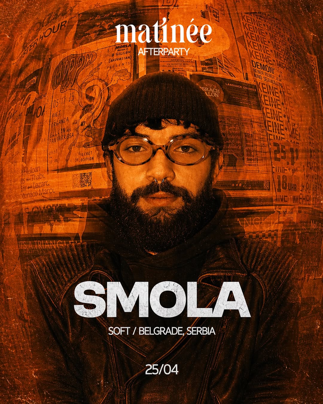 Official afterparty of @podgorica.matinee! 🌓 Smola is a music producer and DJ from Belgrade, whose education is focused on music production and sound design. In a short period of time, with his first two released singles, he managed to capture the attention of the audience. In addition to production and DJing, Smola is the founder of the organization SOFT, whose parties focus on house music and its subgenres. His parties, as well as his solo performances, attract fans of quality sound and have become known for their electrifying atmosphere. With Smola, you’ll never be able to predict where he’ll take you, because, as he says, he loves to swim in the subgenres of house and doesn’t like to stick to established rules. 25/04 • Saturday + @smola.flac 22h Ticket info: 🎫 Until 00h - 3€ After 00h - 5€ FREE entrance with Matinée bracelet! ✨