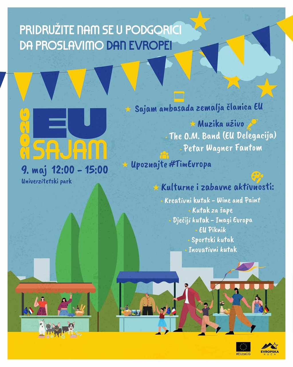 Celebrate Europe Day in Podgorica! 🇪🇺🇲🇪 May 9th is reserved for a journey through EU countries and a rich cultural and entertainment program! ✈️ Embassy fair of EU member states Live music by @fantom.mp3 and The O.M. band of the EU Delegation Children's corner @moj_imaginarijum Creative corner @paintandwinepodgorica Sports corner @matejapopoviic Innovation corner @smart.hub.dvoriste Paw corner @podgoricki_azil 📍 University Park ⏰ 12:00–15:00 Come explore, learn, and enjoy together. See you! 💙
