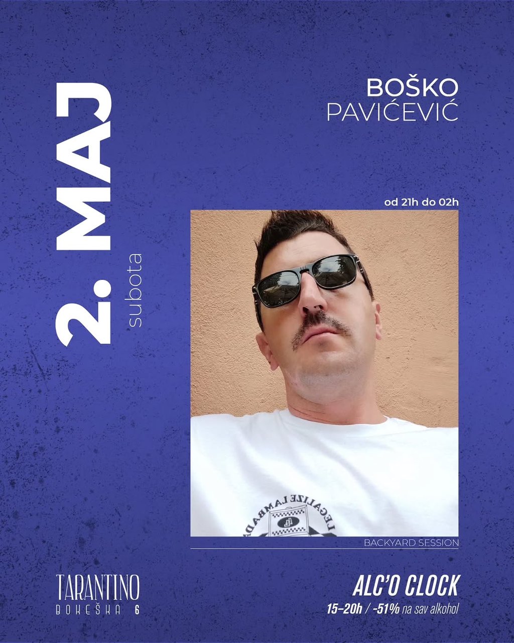 Groove to the sounds of Boško Pavićević. Special offer: 51% off all alcohol from 15:00 to 20:00.