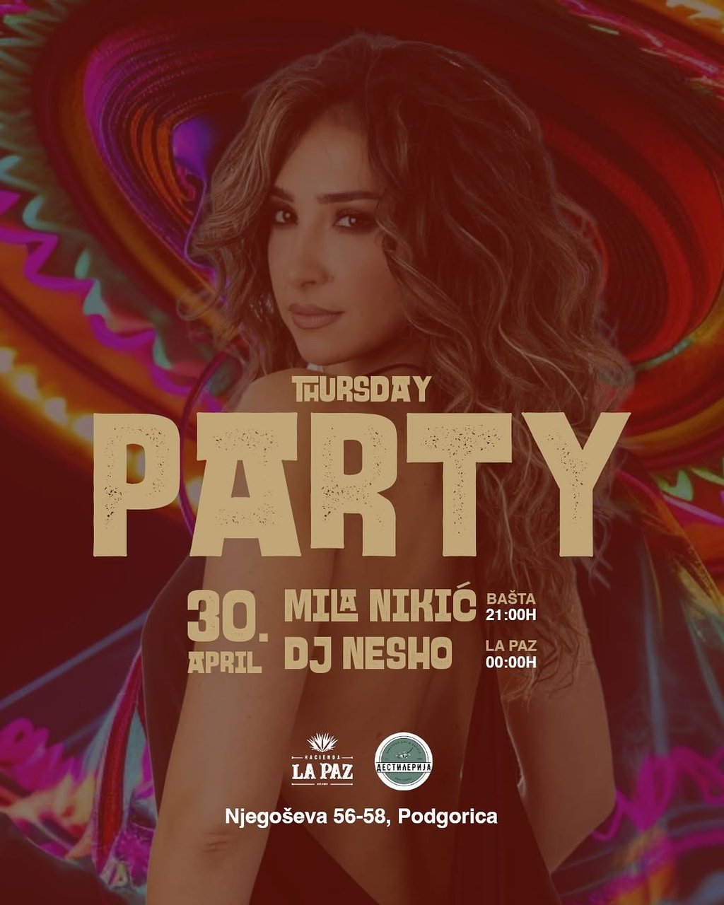 One night, two energies - at La Paz and Destilerija! Mila Nikić | 21:00h | Destilerija x La Paz DJ Nesho | 00:00h | La Paz Address: Njegoševa 56-58, Podgorica.