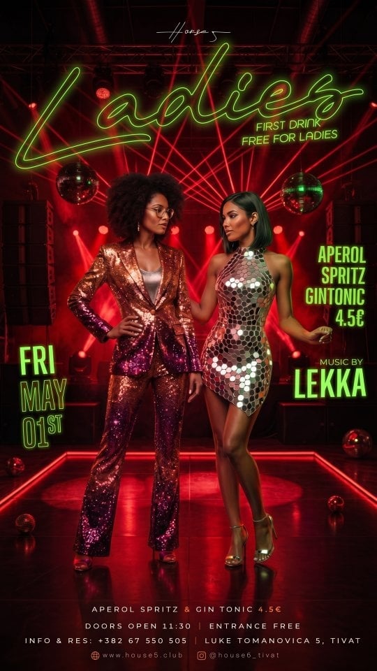 Ladies Night - the after your May 1st needed. Doors: 11:30 PM Entrance: FREE Info & Res: +382 67 550 505