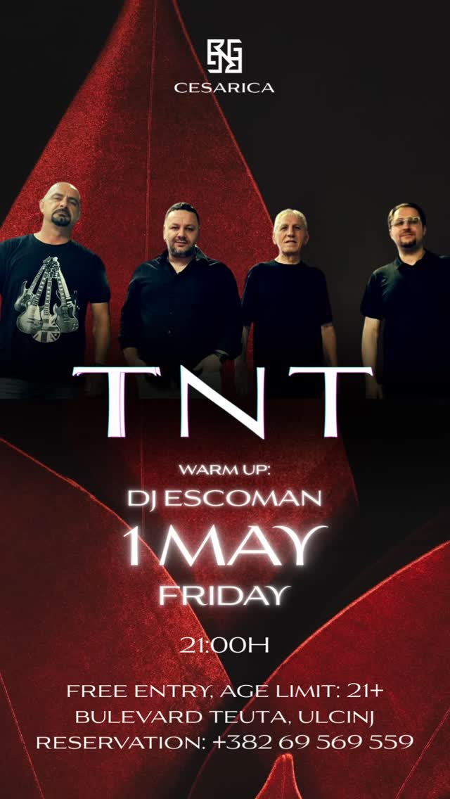@grupi_tnt & @djescoman LIVE AT CESARICA 01. 05 ( 1 MAY) FRIDAY | 21h ENTRY : FREE ‼️ Age limit 21+ * Limited number of seats Reservations and more info: +38269569559 #livemusic #cesarica #cesaricasteakhouse #1may #ulqini