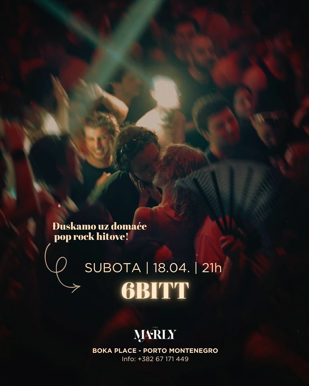 Ove nedelje đuskamo uz domaće pop-rock hitove sa našim @6_bitt ! Spremite se za vrhunsku energiju, dobru muziku i noć za pamćenje! Vidimo se ove subote u Marly Pubu! 🍻 Rezervišite svoje mjesto na vrijeme! #marly #portomontenegro #bokaplace #tivat #muzika